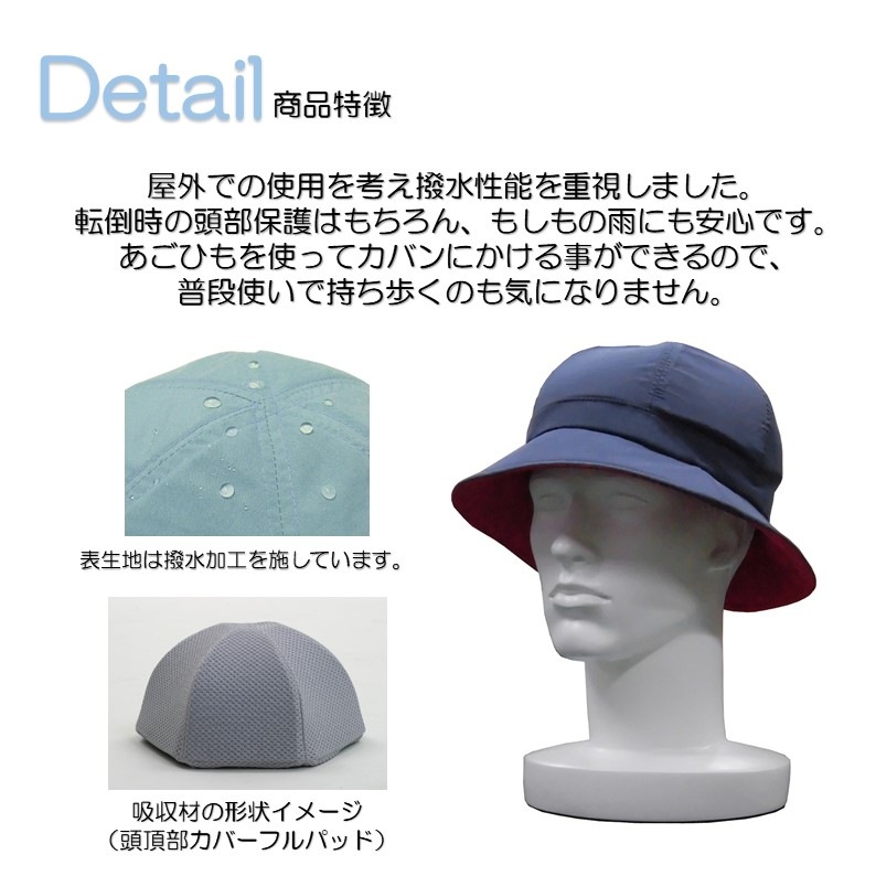 屋外での使用を考え撥水性能を重視、転倒時の頭部保護はもちろん、