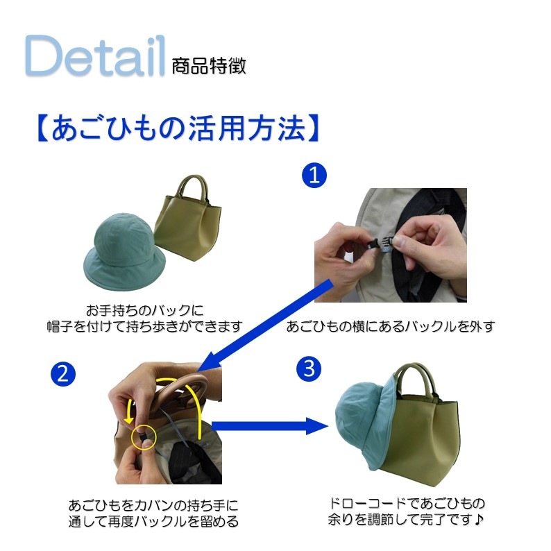 あごひもを使ってカバンなどにかける事ができるので普段使いで持ち